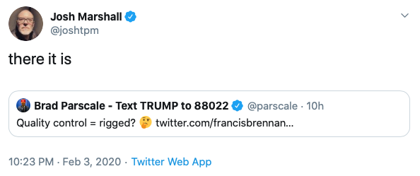 Notice who is most eager to spread rumors about "rigging."https://twitter.com/JDiamond1/status/1224558424152772608 …