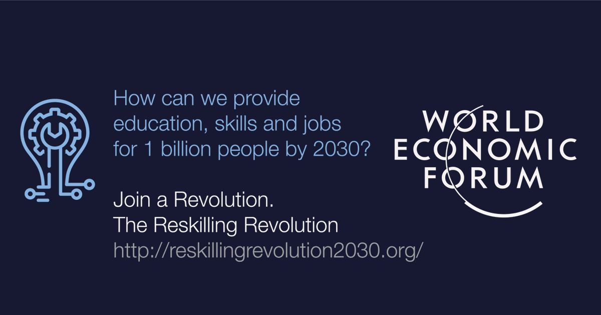 @wef is launching the Reskilling Revolution Platform to provide better jobs and skills to 1 billion people by 2030. As automation advances, we need to create a platform for tomorrow's workforce to adapt to employment of the future: https://wef.ch/2sN88fP@zahidi#wef20pic.twitter.com/D7VRT3UEYL