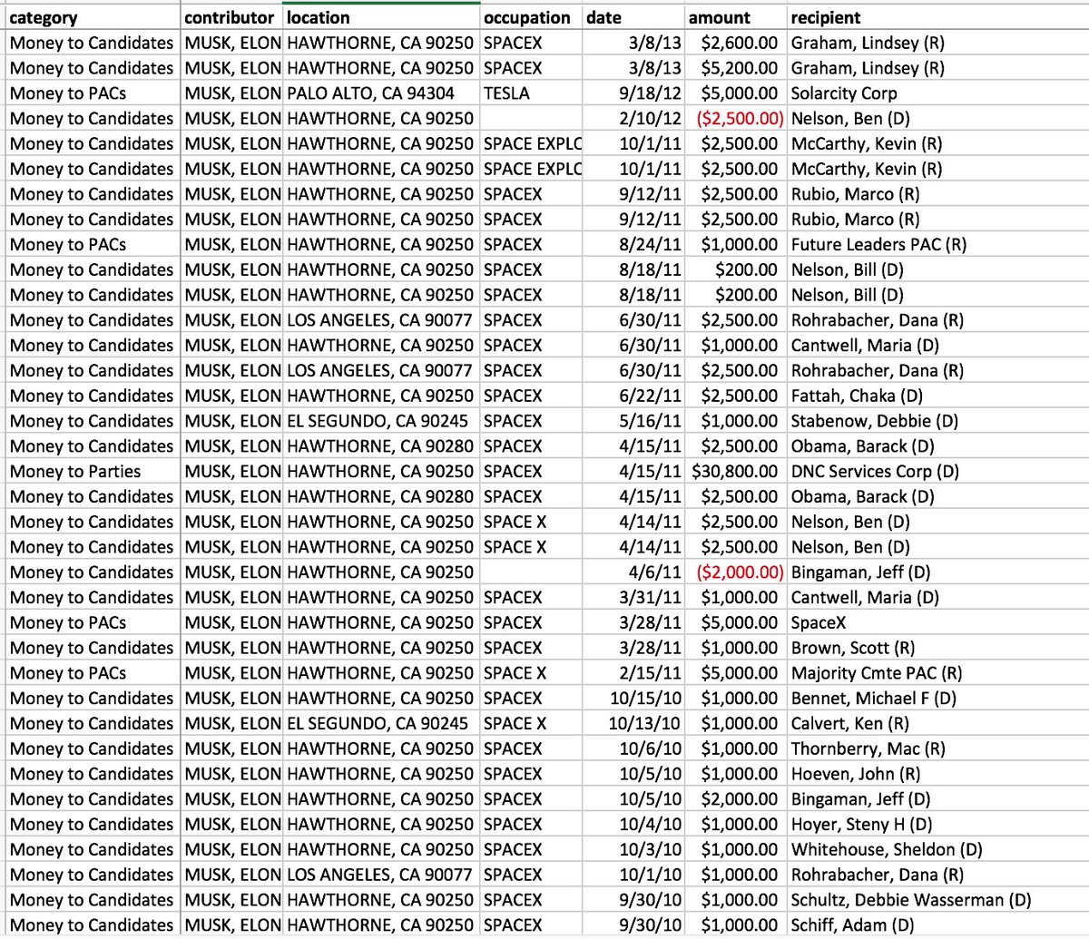 I would hope you can grasp why the CEO of SpaceX (competing for military satelite contracts), and Tesla (competing against the fossil fuel industry and the Auto dealer assoc.) would need to buy influence.