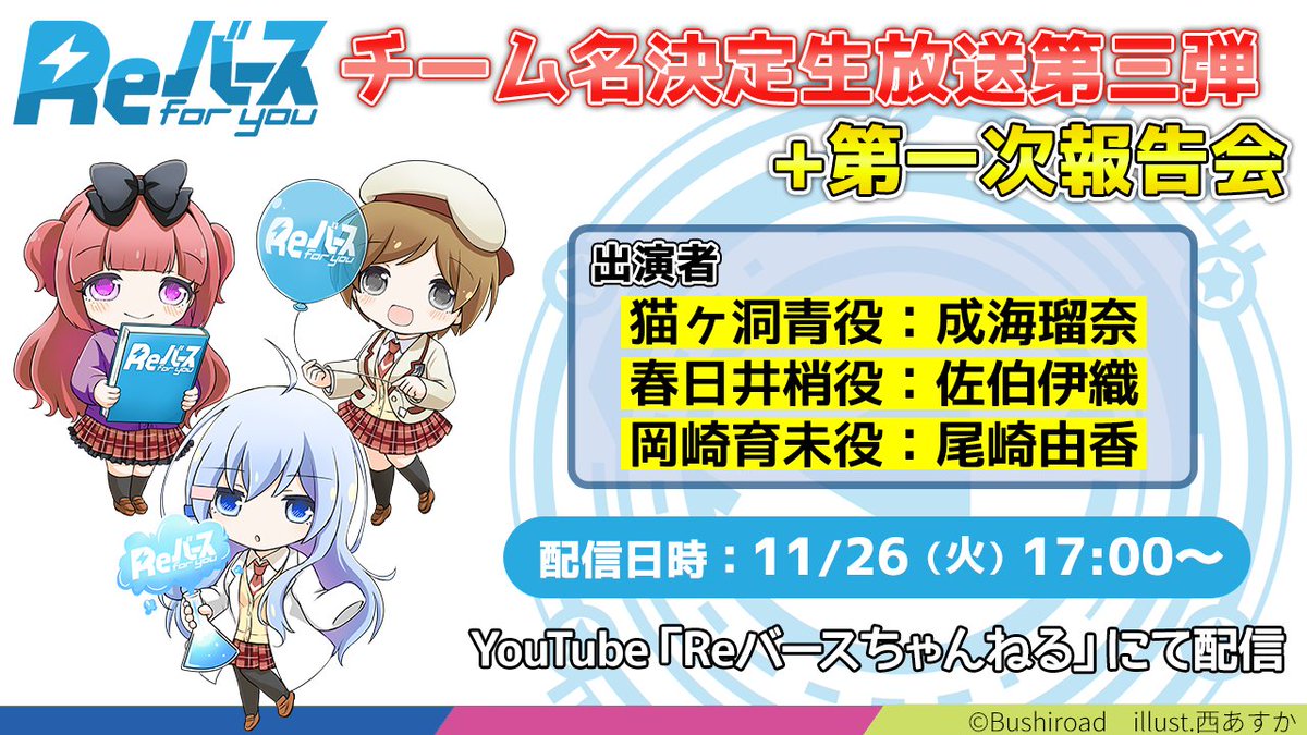 11月26日(火)17時~チーム名決定生放送第三弾を配信いたします