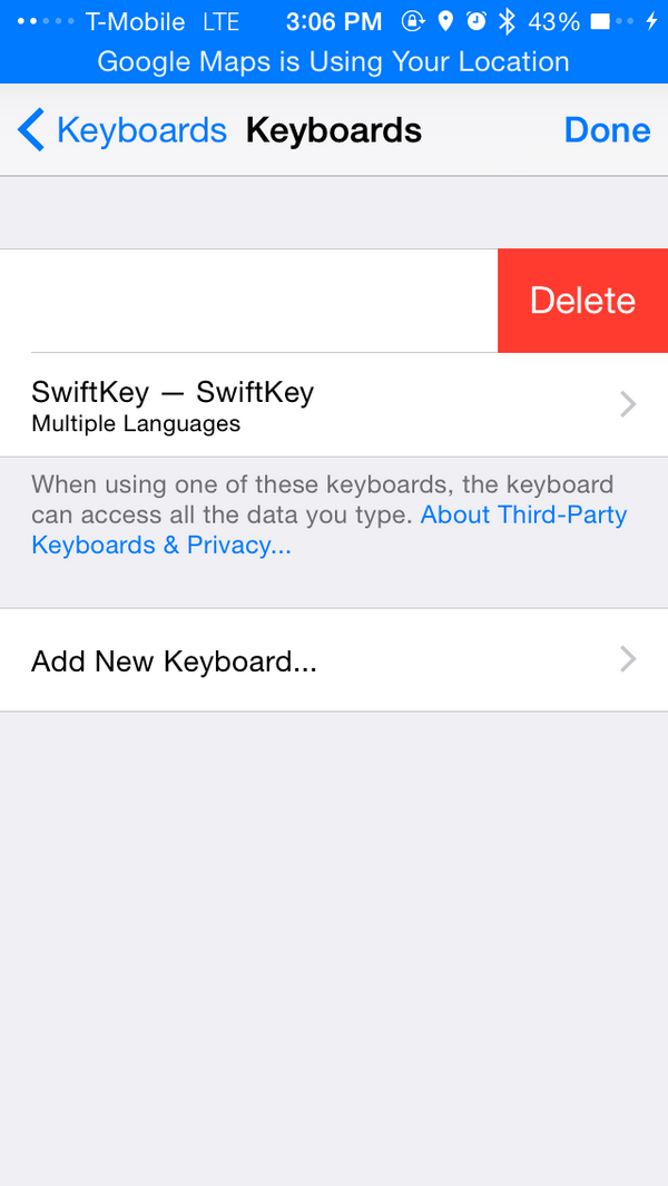 So I have this great new keyboard for swiping on the iPhone 6, and every time I tap to enter a password it flips back to Apple's KB.