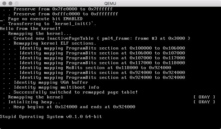 paging finally works correctly! #osdev #rustlang #x86 #kernelpic.twitter.com/p5miTYYwQJ