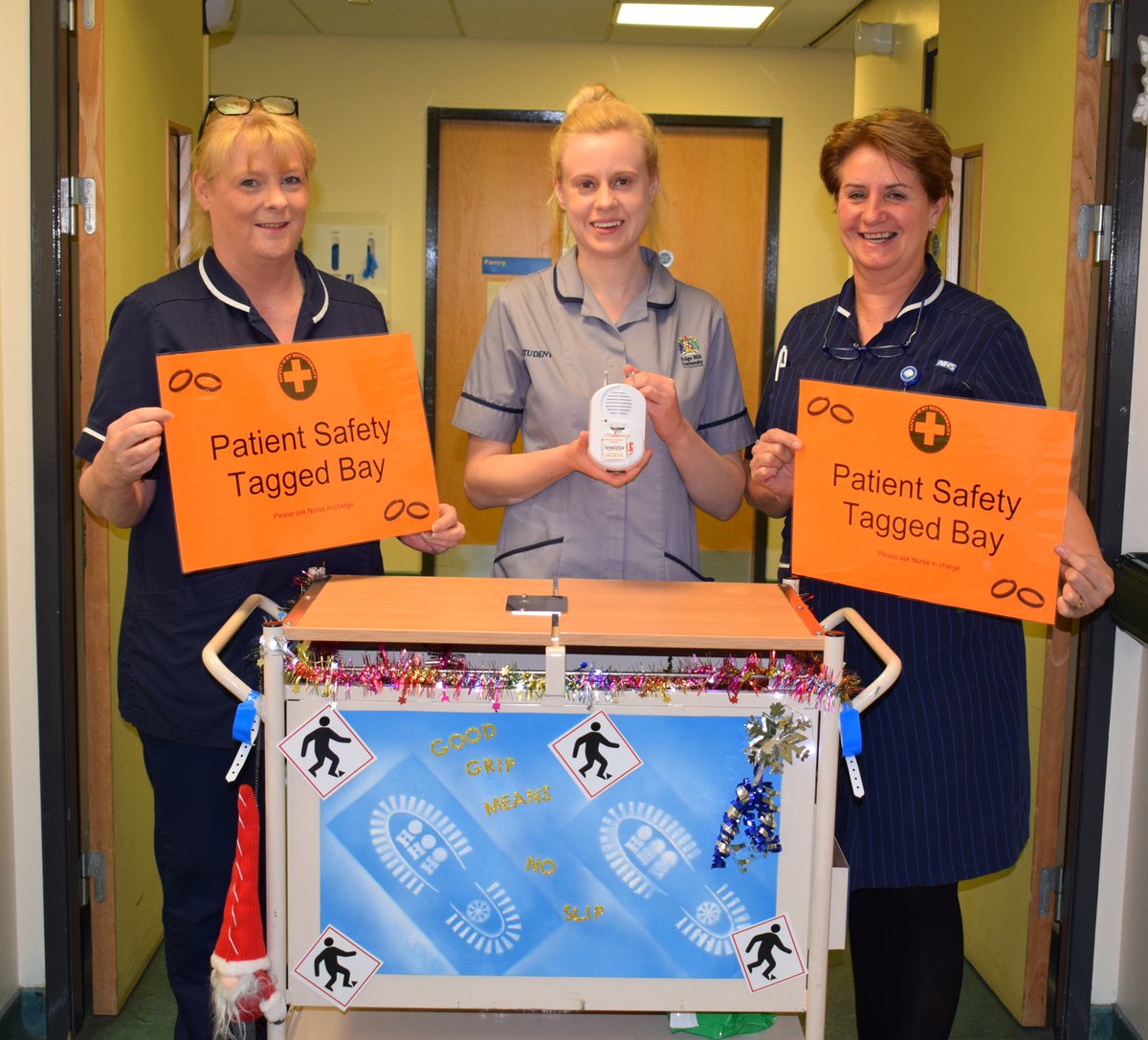 peeled for Carol (right) and her falls prevention trolley when on corridors and wards at Aintree.