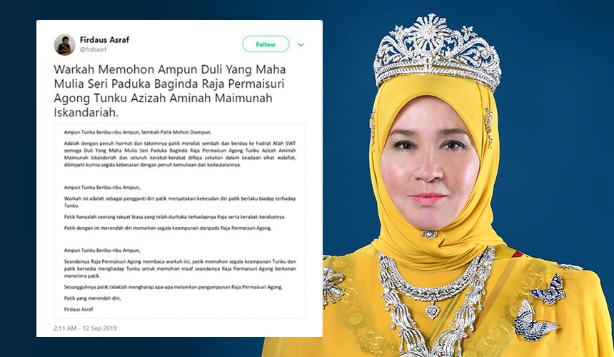 Tangkap dan bg hukuman setimpal..Tak perlu nk ada permohonan maaf sebab tak ada langsung kesedaran.Benda bukan pertama kali jadi.Patutnya mcm Thailand- hina Raja dan family - hukuman bunuh.Rakyat Malaysia ni tak tau takut selagi undang2 tak kuathttps://twitter.com/501Awani/status/1172156093956419584 …