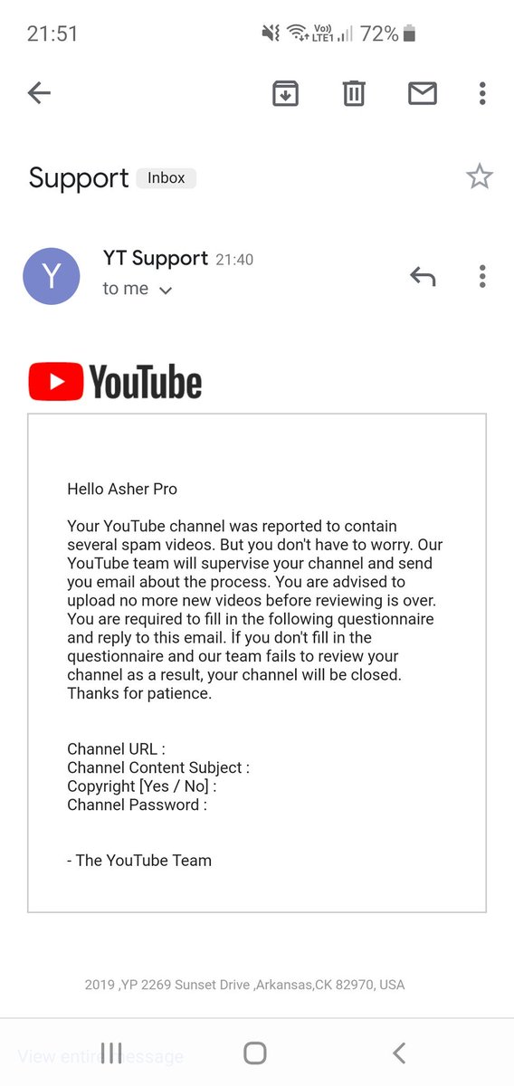 I know this is a Scam but i just wanna make sure it is. Update me @TeamYouTubepic.twitter.com/8RlJEGotFA