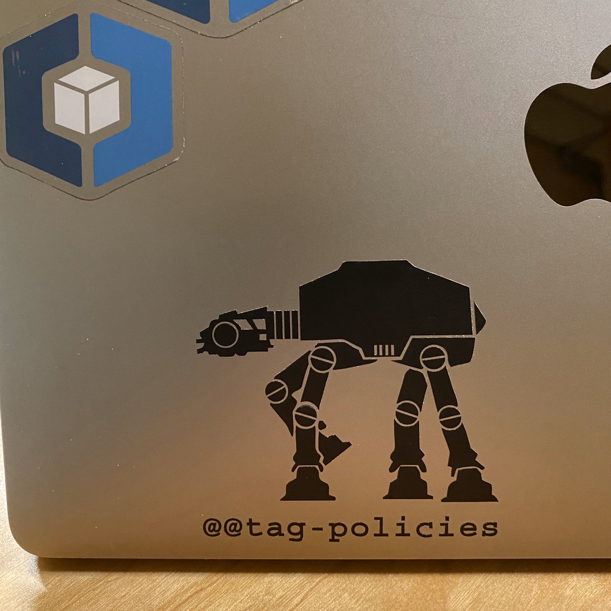 @0xdabbad00) speculated we came up with the tag policies syntax as an excuse to say “atat” in meetings. I wish we were that clever. But, it’s a great excuse for team stickers.pic.twitter.com/4uX7wnvmMy