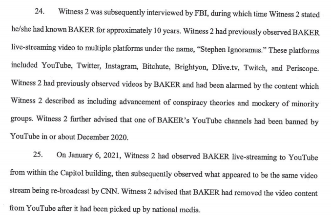 Feds charge North Carolina’s Stephen Baker (aka "Stephen Ignoramus”) in connection with the Capitol insurrection. A witness said they were "alarmed" over his previous videos, which they "described as including advancement of conspiracy theories and mockery of minority groups."pic.twitter.com/8QfkE3HlqZ