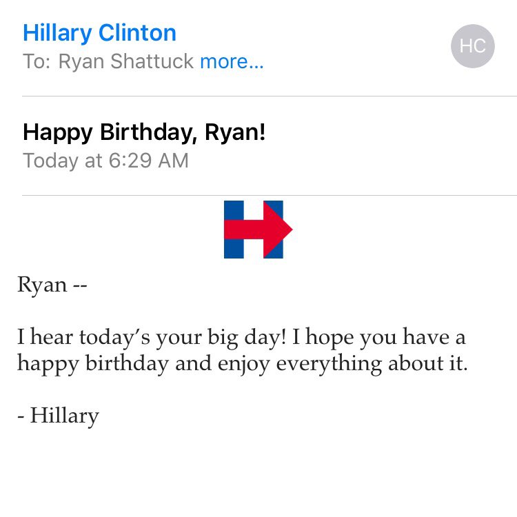 An aide leans over & whispers "Ryan Shattuck's birthday" in Hillary's ear. "Oh shit, I forgot!!!" she yells.pic.twitter.com/Ex0vl6up82
