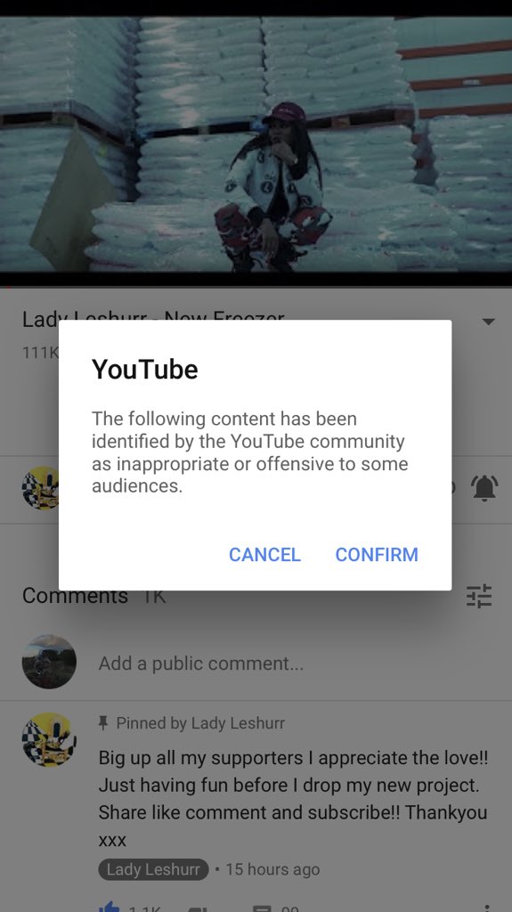 Hi @TeamYouTube can you please give us the explanation why YouTube has made this music video restricted? And please explain how it is inappropriate or offensive to some viewers? 😡. @LadyLeshurr #NewFreezerpic.twitter.com/PnIypo8osS