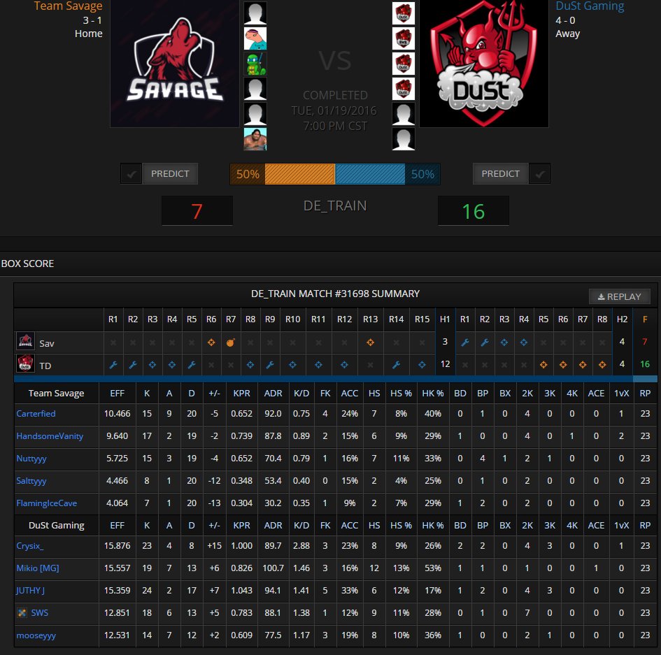 Now 4-0 @TeamDuSt in @cevo after taking down @TeamSavageGG tough/close game. ggs! @ttesports #ttesports Scoreboard:pic.twitter.com/3b8D0md6lU