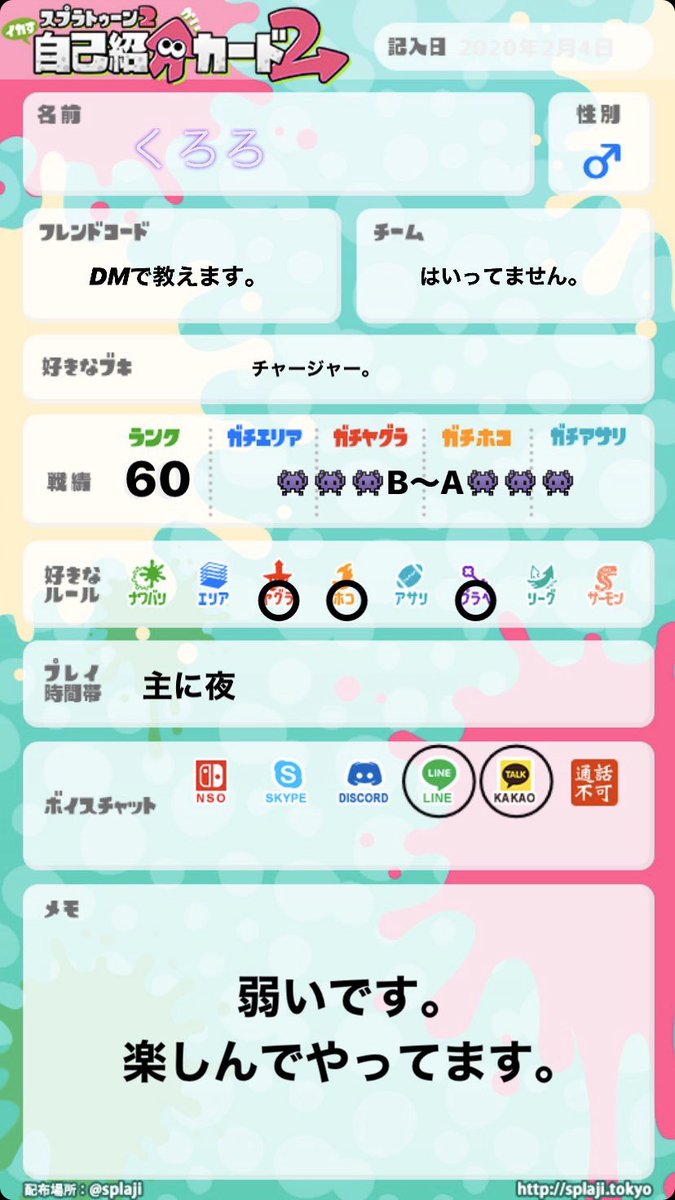 #スプラトゥーン2自己紹介カード#スプラトゥーン2フレンド募集#スプラトゥーン2してる人と繋がりたいpic.twitter.com/DFGFuO8muG