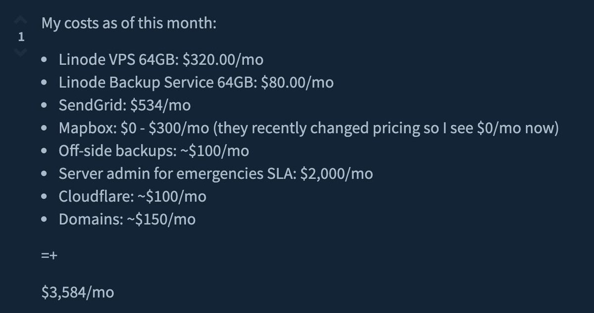 Shared my current costs for running all my projects (Nomad List, Remote OK, Hoodmaps etc) on