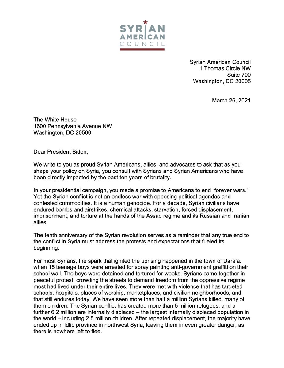 @POTUS to#SpeakToSyrians to inform his policy on Syria. We are honored to be among 12 Syrian American organizations and alongside these 24 advocates to sign on.pic.twitter.com/Rtvn37LZ4p