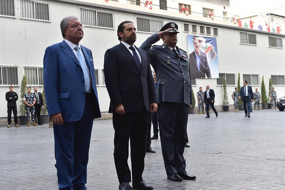 بحضور الرئيس #الحريري جرى مراسم وضع الاكاليل على النصب التذكاري لوسام الحسن في باحة ثكنة المقر العام لقوى الامن الداخليpic.twitter.com/pHObyRCDGR