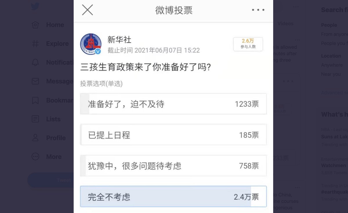 #ThreeChildPolicy What about the cost of living? 「他們不知道大多數年輕人想餵飽自己都夠累了嗎?」一名用戶寫道,指的是社會普遍對生活成本提高的不滿。 “Don’t they know most young people are tired enough just trying to feed themselves?”@suilee@nytchinesehttps://cn.nytimes.com/china/20210531/china-three-child-policy/ …Thanks. Twitter will use this to make your timeline better. UndoUndo
