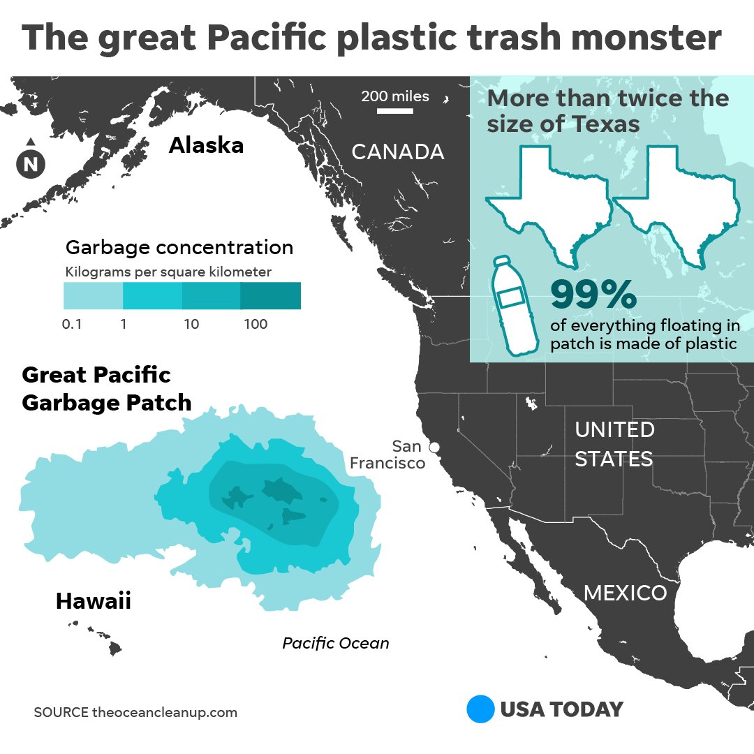 The world's largest collection of ocean garbage is now twice the size of Texas. https://usat.ly/2ubH8q1 pic.twitter.com/gHhcFjbIQy