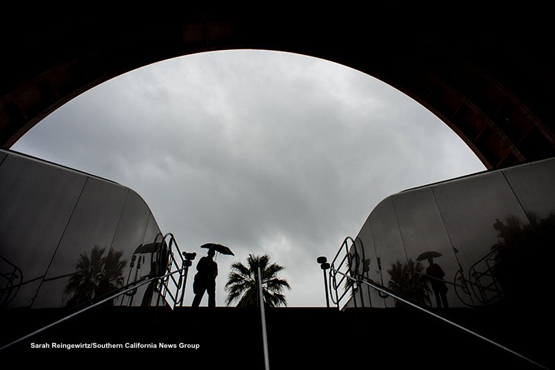A man heads into the North Hollywood Metro Station during today's rain.pic.twitter.com/TR2xmyQkQz