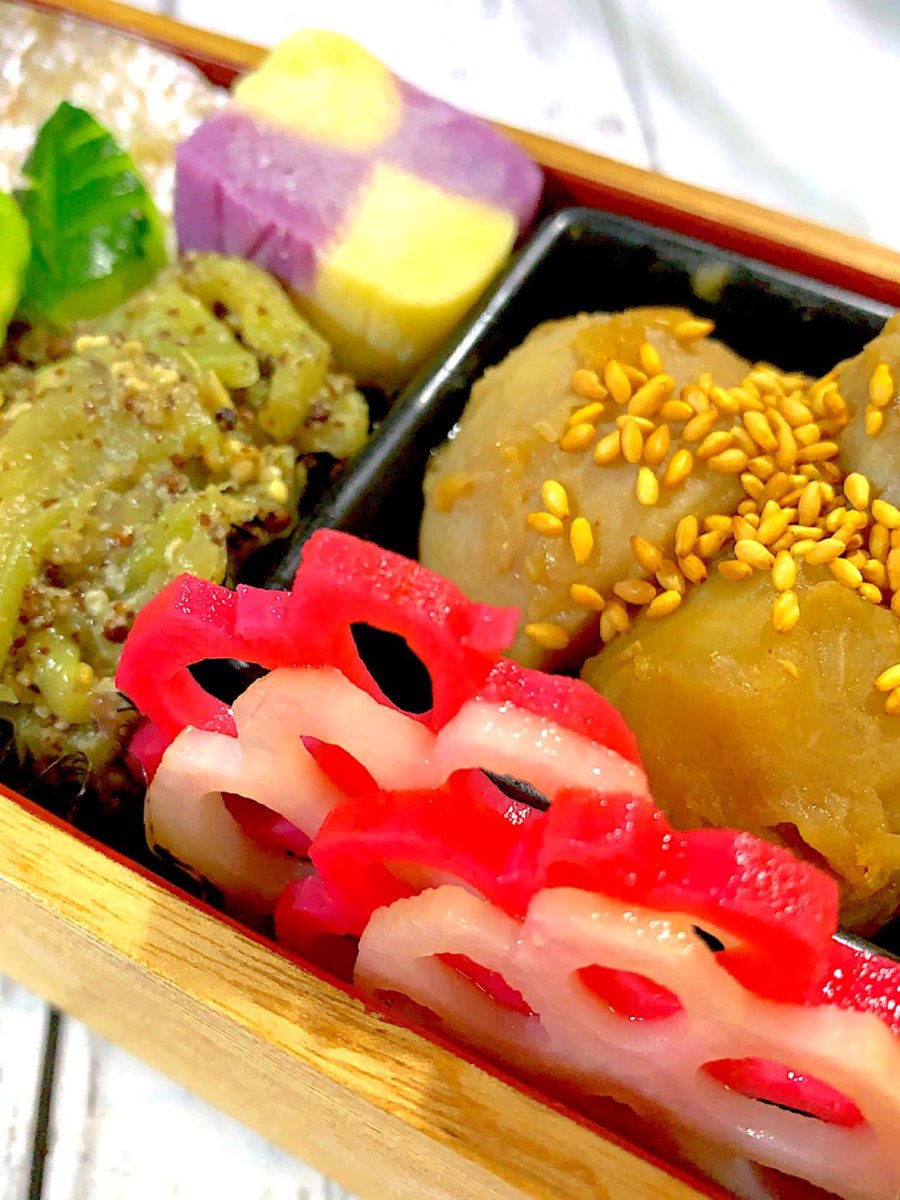 おはようございます。 とろろおにぎり ムツの照り焼き だし巻き玉子 野菜はんぺんと大根のオイスター風煮物 ターツァイのナムル