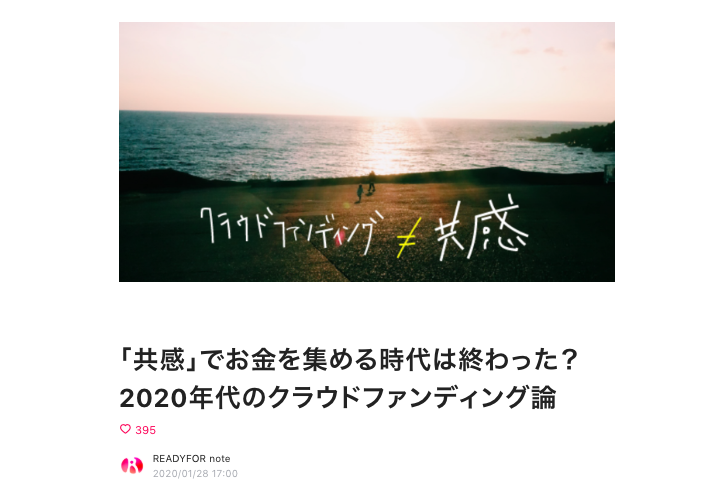 Readyforのnoteがむちゃバズってて、企業noteで珍しいと思って理由を考えてたけど、やぱ編集で入ってる徳さんが超noteユーザーである事がでかいと思う。 竹村さん