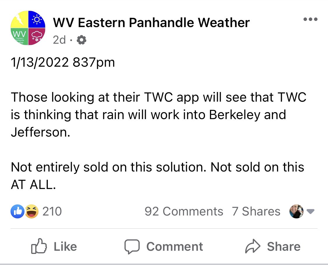 If you like sass with your snow forecast, strongly recommend WV Eastern Panhandle Weather on fb.pic.twitter.com/Qtgyo5u3iU