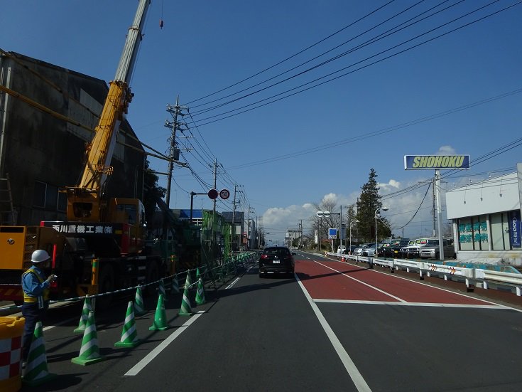 【3/16/県道22号Ⅱ】 (都)石川下土棚線の接続関連工事が佳境 を迎えている下土棚大橋西口の交差点の 信号機に、右折矢印灯火がカバーを被った 状態で追加されてました 一方、その矢印の稼働に欠かせぬ右折帯の 追加工事は鉄骨打込みが続くなど尚道半ば 建物間際での難工事が続きますpic.twitter.com/J6SYPOzU0c