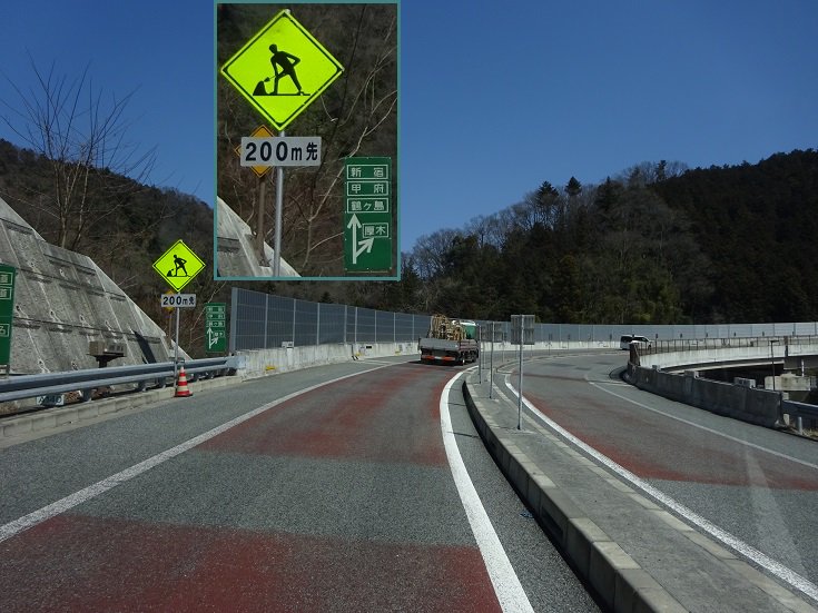 【3/22/圏央道 内回り】 高尾山ICの本線合流部の路面に逆走防止 の矢印表示が追加されてました。手前の 「工事中」はこれの事だった? 一方、導流帯上のコーンポストは開通時 からの物がそのまま。他のインターで追加 された様な矢印入りのに更新する予定は、 今のトコ無いのかな?pic.twitter.com/fCTaA293Wy