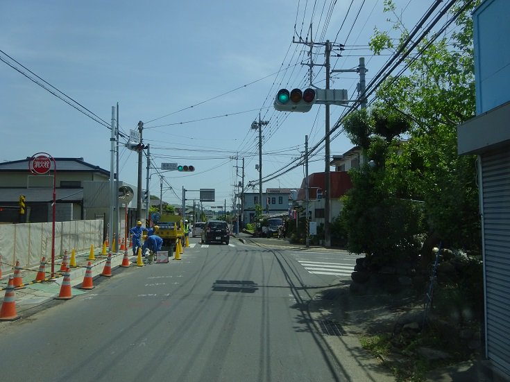 伊勢原の温泉入口(県道603号✕市道1号)、 県道大山側の信号機が、支柱を交換の上 移設されてました 工期自体は来月いっぱいですが、 歩道拡幅の工事自体は近々完了しそうですpic.twitter.com/syfdzm547H