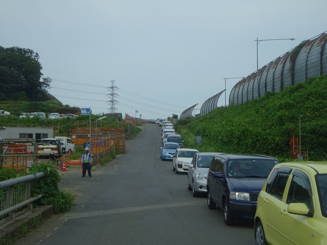 そんな訳で、ひとつ手前の信号・東名BS下 から普段2~3分のトコに11分も掛かった 今日の川上橋 対向も渋滞も酷く、坂の上まで400mほど そしてその頂上側から、予てより地山の 掘削が進められていたフェンスの向う側で 路盤整備がスタート そこ、新側道の用地だったんね(気付けよpic.twitter.com/ZnLBGxP8uY