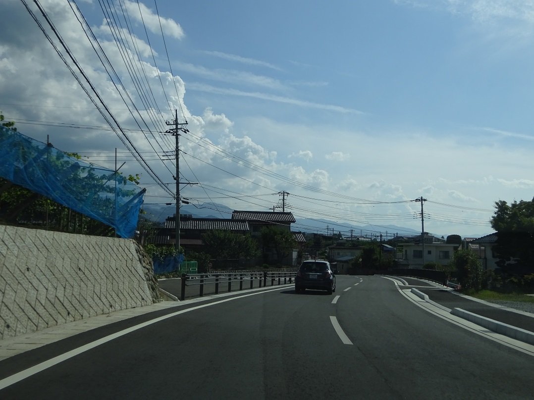 尤も、そんな極端に狭い区間は青苔寺手前 のごく一部、約300mのみ。残りの区間は、 起伏やカーブは多いものの、1.5車線の一部 区間も含め、甲府盆地東縁の斜面に広がる 果樹園の中を突っ走る快走路 実質的なBPで、更に山手を走る広域農道と 並び、名実共に笹子-塩山の最短路ですpic.twitter.com/B9BdrJUU5J