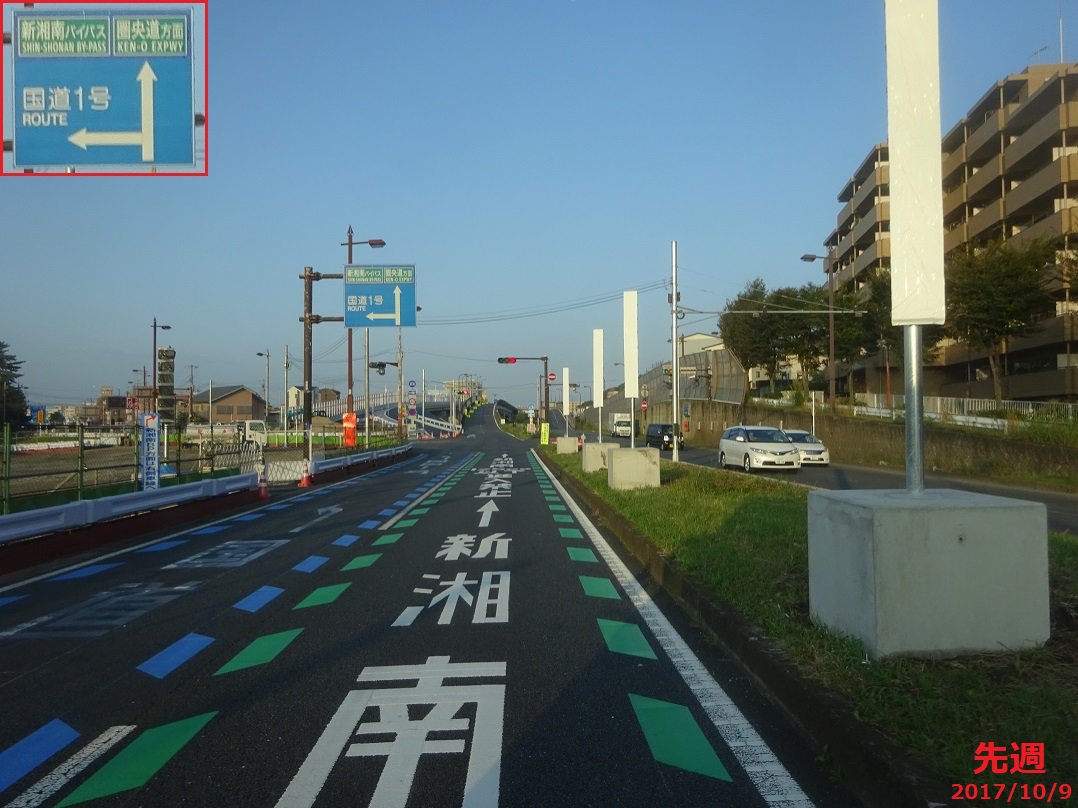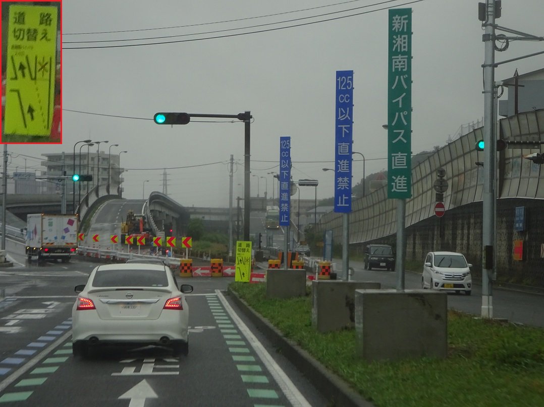 対する下り線の藤沢IC 中央分離帯にぎっしり並べられた標識が ベールを脱ぎ、その内容が白日の下に 色は緑と青の2色で、前者は新湘南BPへの 誘導を、後者は125㏄以下の二輪の排除を それぞれ担当。要は前者は緑の右車線を、 後者は青の左車線を進んでねと 併せて青看の直進も緑色にpic.twitter.com/k57b2zmPq6