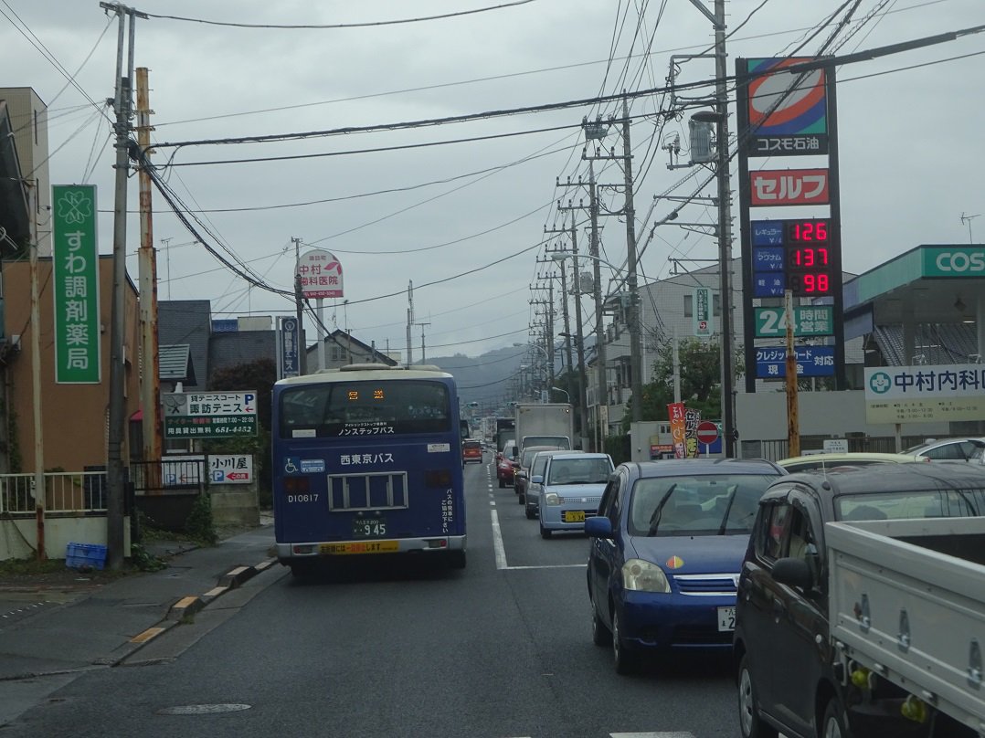 尚、反対向きは高尾、陣馬両街道共に延々 と渋滞。特に後者の上り(八王子駅方面)は 両者の交わる四谷町から大楽寺町まで1.5㎞ 四谷町自体も高尾街道から駅方面へ進入 できない程に先詰ってた事から察するに、 恐らくR20追分町まで更に4㎞、計6㎞弱 の大渋滞だった模様。路線バス乙…pic.twitter.com/zugDsanG1U