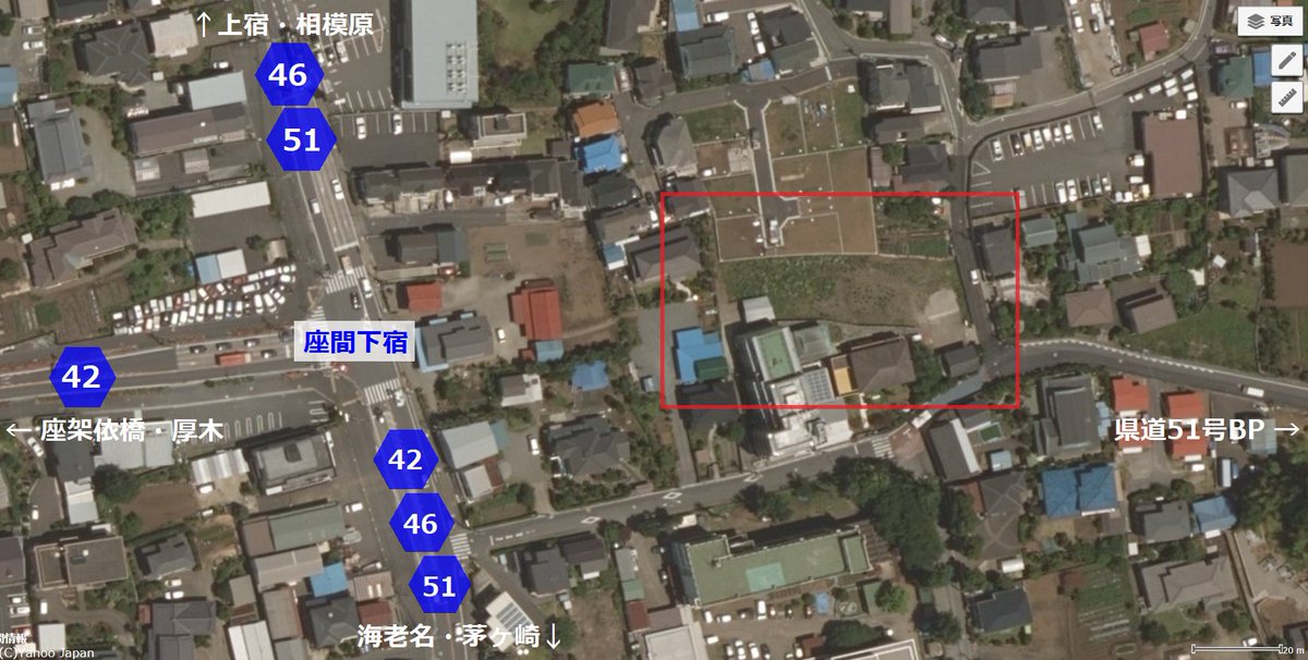 「座架依橋」と言えば、 その座架依橋擁する県道42号と 県道51号の相武台入谷バイパスを直結する (都)座間南林間線の予定地をみっけた 早く出来ないかな、この道路 これがあれば渋滞知らずの相武台入谷BP から直接42号に入れる様になり、上宿の 下らん渋滞とお去らば出来るのにぃpic.twitter.com/sYm2bCnc7b