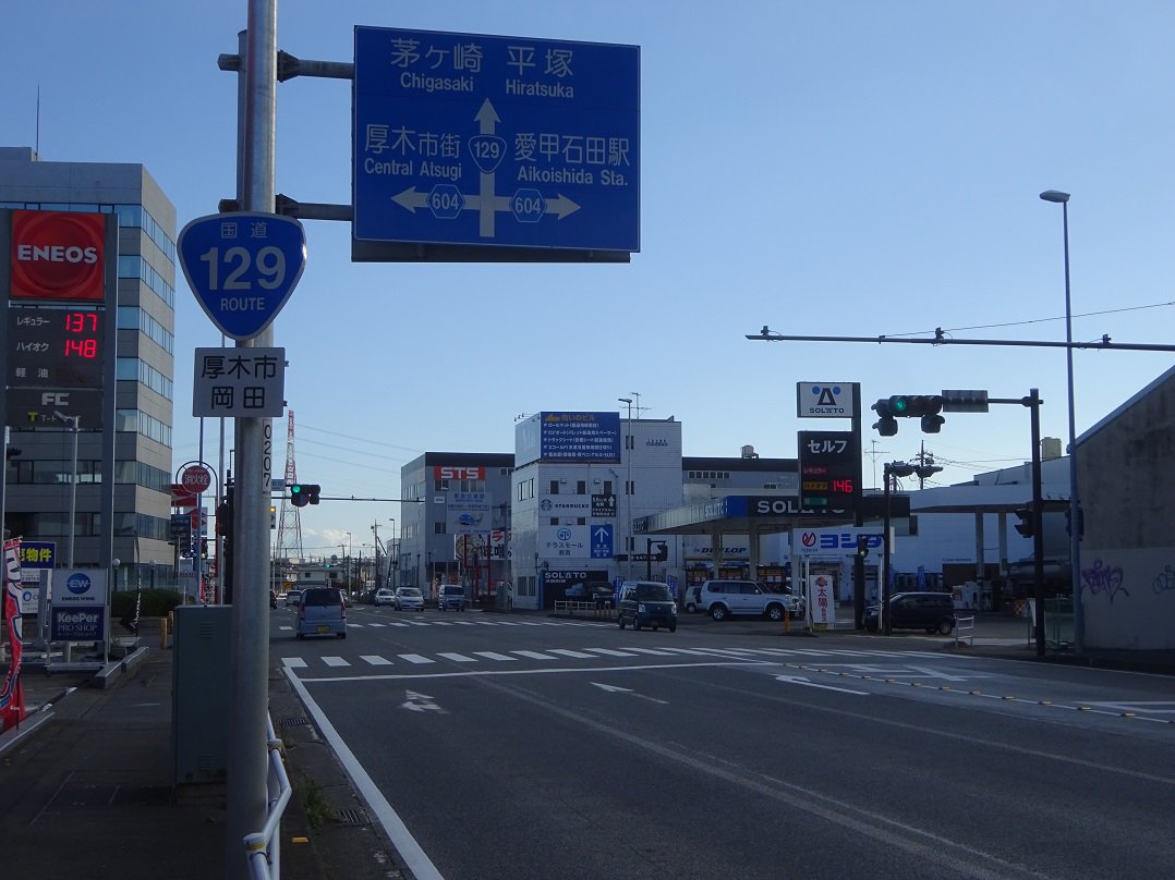 そんな「酒井前田」のR129・相模原側は、 小田厚のメイン出入口(小田厚側道北口)も 東名・厚木ICも過ぎて残るは新東名だけ だからか、交換される気配ナシ よって今後も当面、県道604号側とは 対照的な「緑被地率」の低さで佇む模様 あと通る度に思うんだけどおにぎり近過ぎ 件の青看の元ネタ?(´∀’)pic.twitter.com/lrk0Zw3Cvp