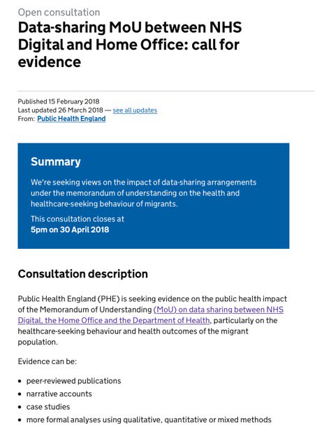 #NHS thinking their information will be shared with@ukhomeoffice?@PHE_uk are collecting evidence. Submit a case study here: https://goo.gl/er8xht pic.twitter.com/Svq8HHhU0y