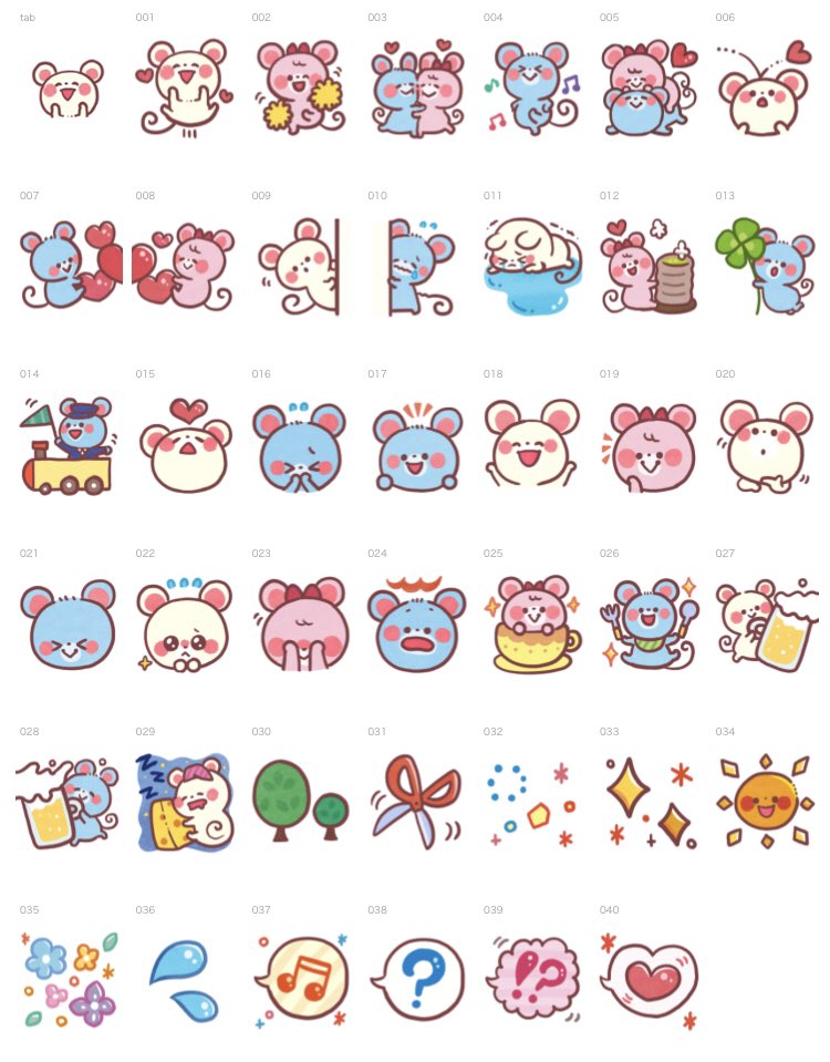 可愛いねずみ達の絵文字と、使いやすい装飾を揃えました