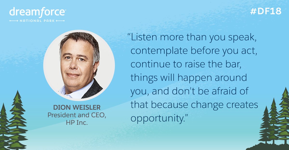 "My dad had a philosophy of 'stop, think, act, learn.'" @HP CEO Dion Weisler's leadership approach comes with a long history of success: https://sforce.co/2xFsGWR #DF18pic.twitter.com/kI7P6UTxRk