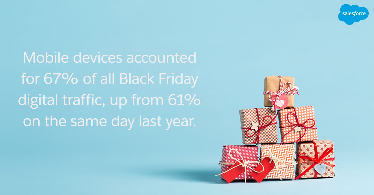 🌙 Shoppers woke up at the crack of dawn on #BlackFriday, threw on slippers, and ran for . . . their phones. Mobile purchases surpassed last year's numbers as shoppers intentionally spent, cherry-picking their favorite items. 🍒 https://sforce.co/2THrawz  (READ THREAD) 🎁pic.twitter.com/yk6xq6RLtl