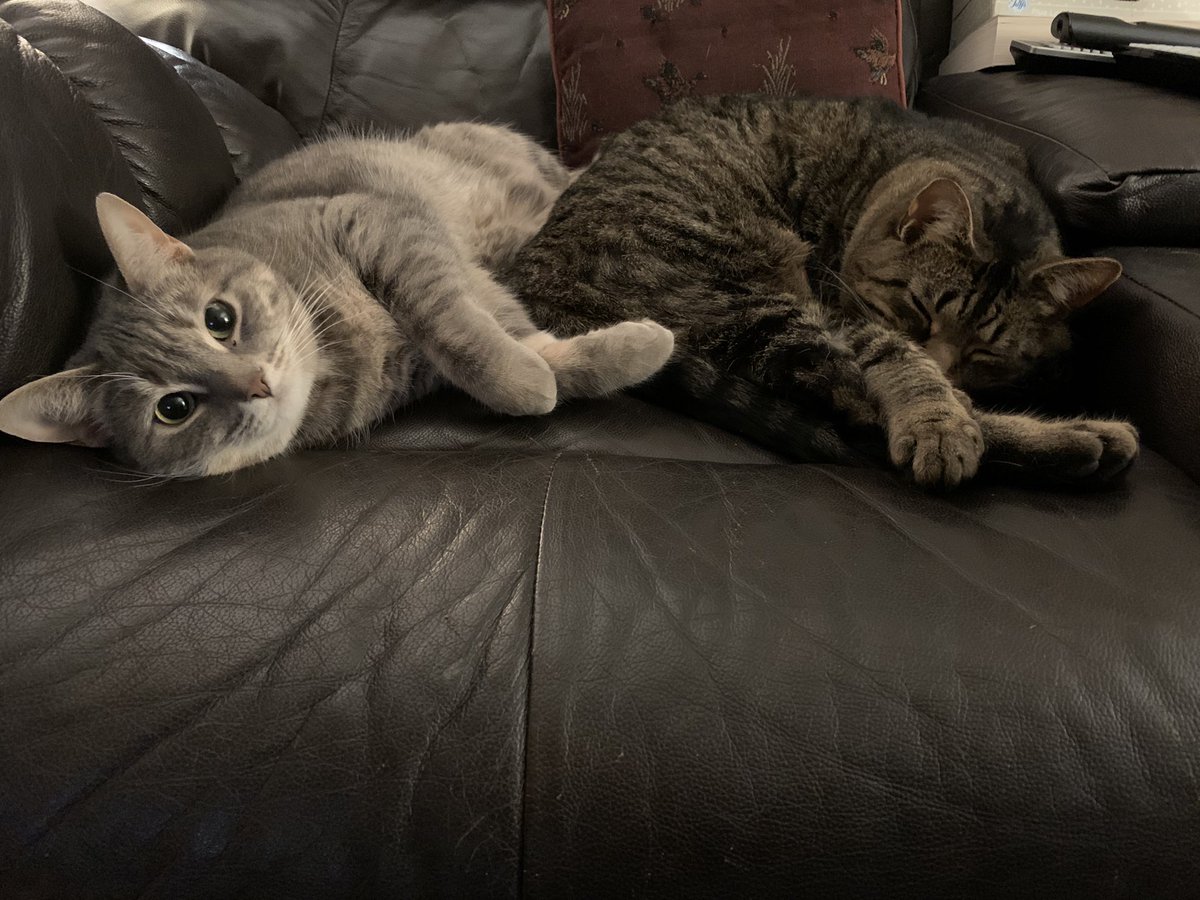 Luci (light grey) & Linus (brown). Luci started her life as Lucifer, as the mischievous one of her litter, until the foster family realized she was a she. Although spelling is off, works with our theme. Linus (diff litter) started as Cinnamon.