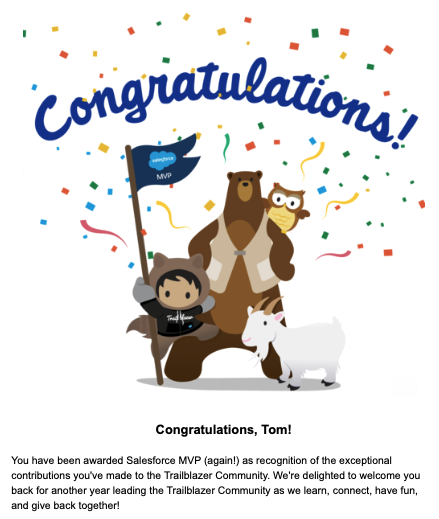 So honored to be able to carry the #SalesforceMVP flag again this year - excited to continue serving the community!pic.twitter.com/rGVPgpNRJV