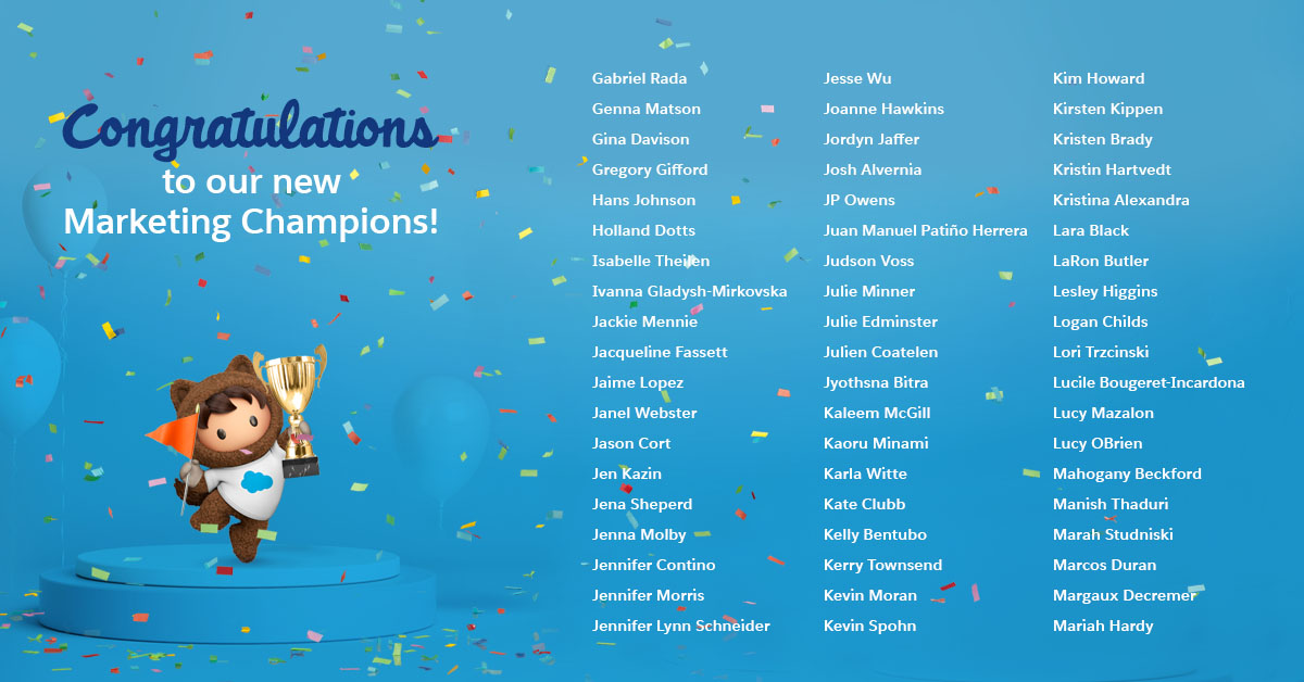 *drum roll, please* 🥁 We're thrilled to announce our 2020 #MarketingChampions! We look forward to seeing how your passion and expertise will transform the marketing community. 🏆: http://sforce.co/champs  pic.twitter.com/uixCt6qXom