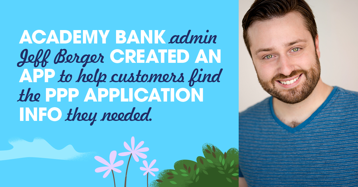 Academy Bank's customers were applying for the Paycheck Protection Program but tellers couldn't see the status of applications. #AwesomeAdmin Jeff Berger built an app in 5 hrs to let tellers check the status & pivot resources to process applications: https://sforce.co/2WdxyxC pic.twitter.com/PkdreBHb5S