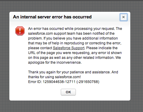 @salesforce Getting Internal Server Error in Sandboxes when I go to Schema Builder: 1259044638-12711 (-291650768)pic.twitter.com/6YW1XYNNVv