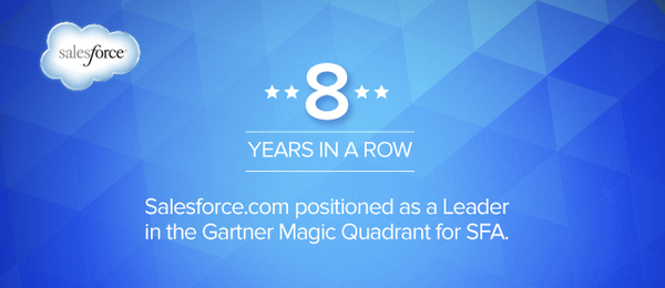 Salesforce lands in the Leader quadrant in Gartner Magic Quadrant for Sales Force Automation. http://sforce.co/1lXKjBX pic.twitter.com/6KlGMw44sY