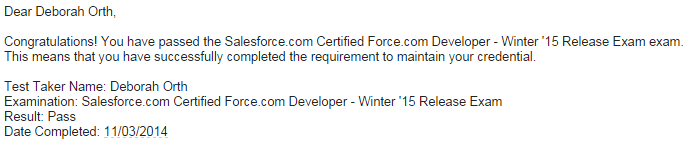 and the @salesforce Winter '15 dev exam too. I'm good for another 4 months or so :-).pic.twitter.com/5RDNETYZb9