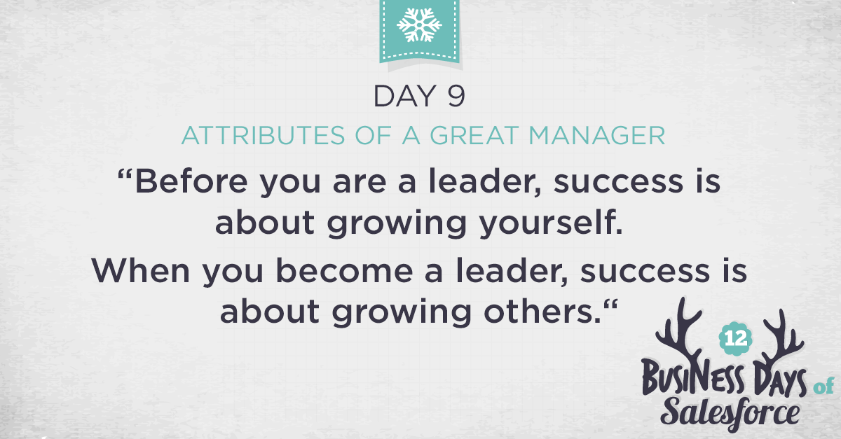 On the ninth business day of Salesforce, we bring: 9 attributes of a great manager. http://sforce.co/1AZs2wg pic.twitter.com/6ZE7Uz2Yw6