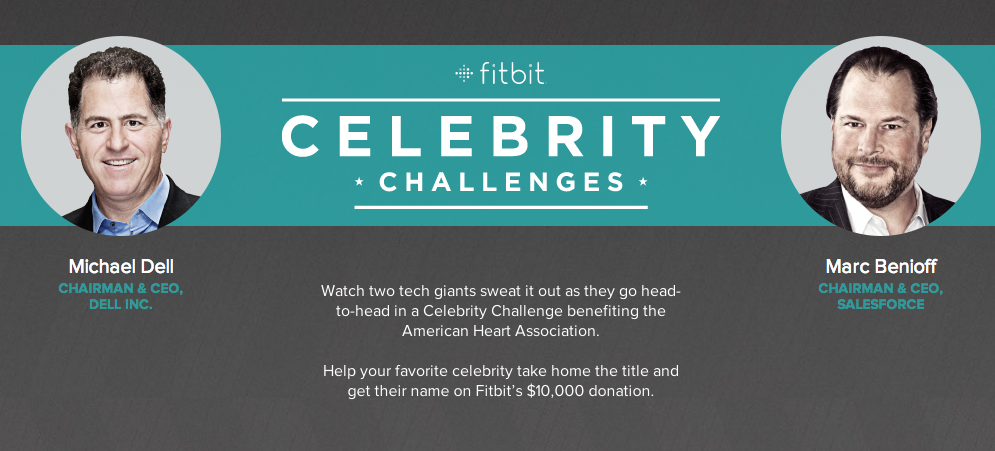 It's @Benioff VS @michaeldell in the Fitbit Challenge. Learn more & help fight heart disease: http://sforce.co/1MHuhuJ pic.twitter.com/WBl7opajJk