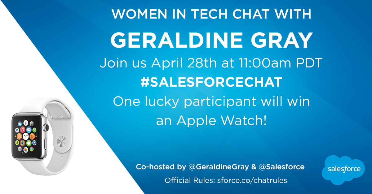 Excited for my first #SalesforceChat tomorrow with @GeraldineGray, the original #GirlyGeek!https://twitter.com/salesforce/status/592736733311148033 …