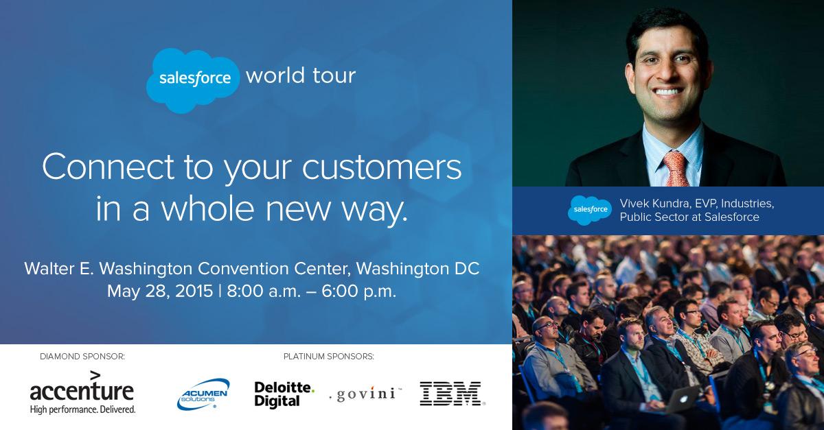 Join us for #SalesforceTour DC on 5/28, with keynote speaker @VivekKundra! Register here: http://sforce.co/1FIBcnR pic.twitter.com/g338oRloGg