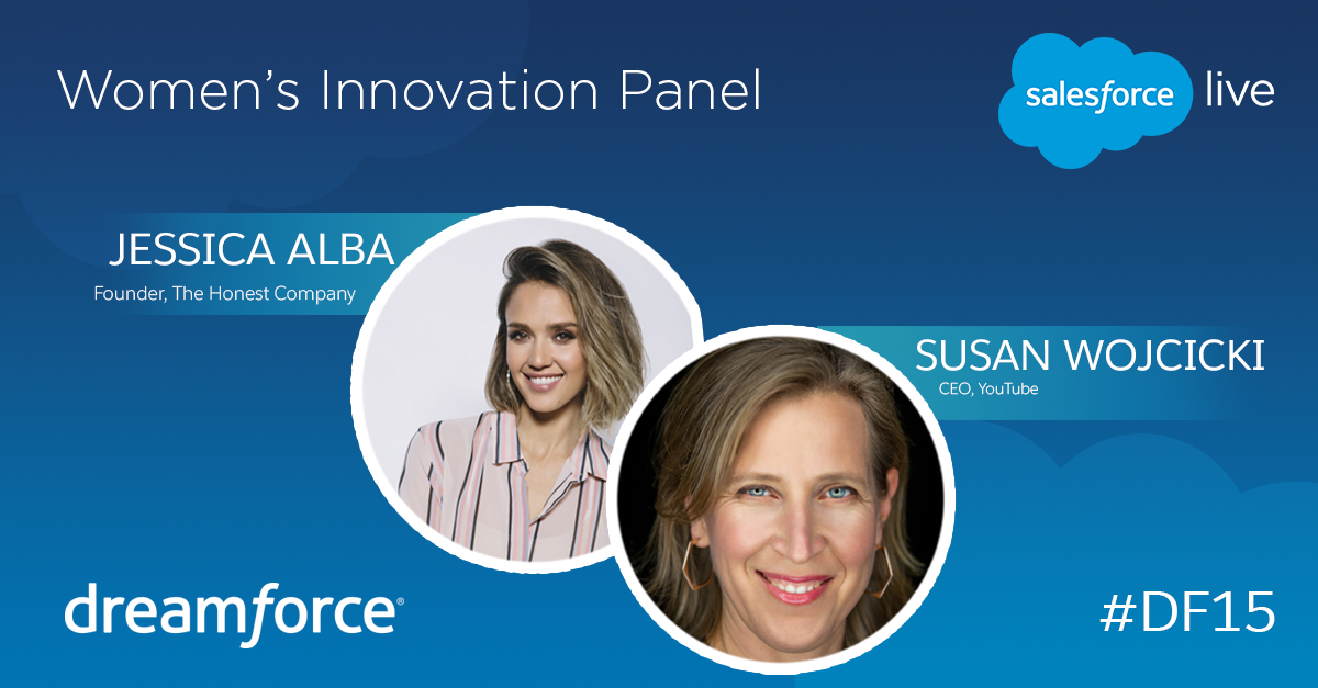 LIVE NOW: Self-made women @jessicaalba & @SusanWojcicki lead our women's leadership panel. http://sforce.co/1QK5yaY pic.twitter.com/dt6T6SUgtE