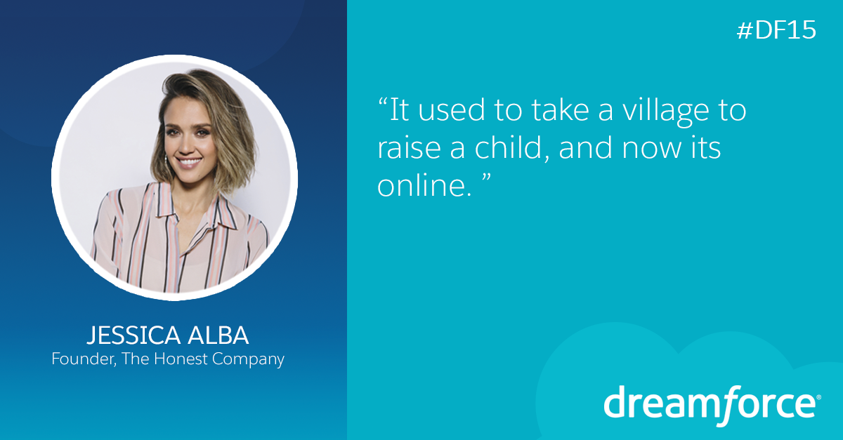 "It used to take a village, and now its online." @jessicaalba #DF15WomenLead http://sforce.co/1iAMTU2 #DF15pic.twitter.com/5qphNCc5UV